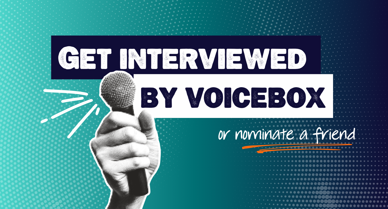 An in-depth interview with our community manager (conducted either in writing or via Google Meet), a feature on the VoiceBox website and social media platforms, and compensation for your time.